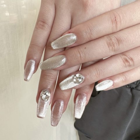 #マグネットネイル#ブイカットストーン#下北沢ネイルサロン#アシンメトリーネイル#シンプルネイル#ワンカラーネイル#長さだしネイル#大人ネイル#上品ネイル