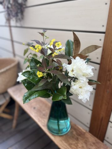 店内のお花が新しくなり、今回のお花はとても涼しげな色合わせになっております。
